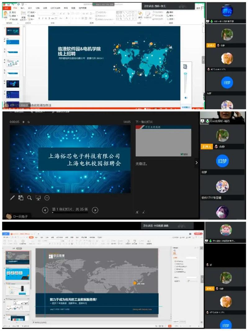 紧接着,来自园区的上海裕芯电子科技有限公司、中云开源数据技术(上海)有限公司、上海梦创双杨数据科技股份有限公司、上海净阅科技有限公司、上海西码智能科技股份有限公司、上海鹤优信息科技有限公司等9家企业HR依次进行宣讲。HR们的精心宣讲让同学们对企业的发展历程、产品服务、岗位需求、薪资福利等有了更加全面深入的了解,同学们不断地在线发送热烈掌声,现场互动频繁,气氛热烈活跃。