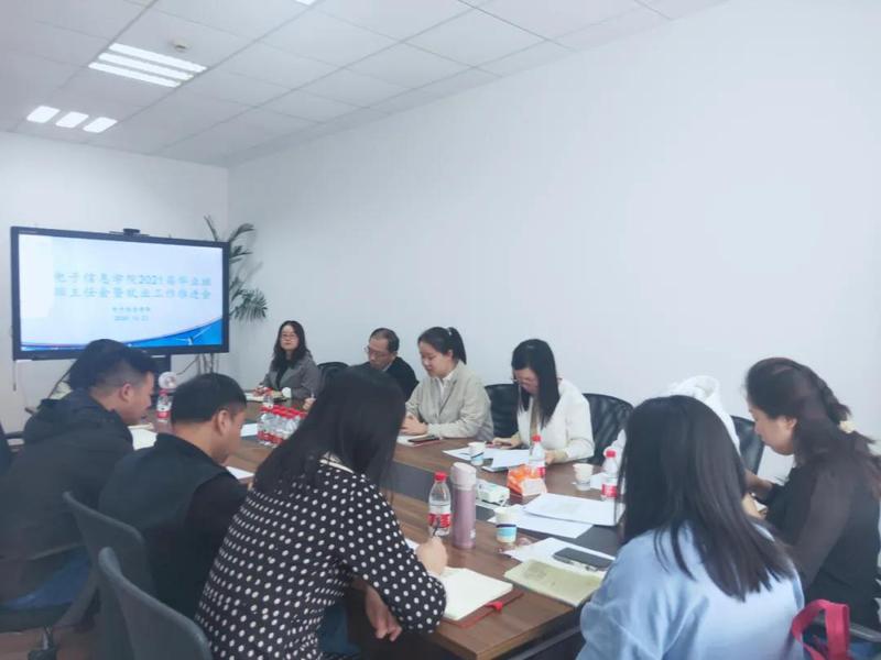 近期,电子信息学院通过毕业班班主任会、就业工作研讨会、分班级就业推进会等形式全院全员共同推进2021届毕业生就业工作。10月23日上午10:00,电子信息学院2021届毕业生就业工作推进会在信息楼506举行。学院党政领导、教学管理办公室主任、毕业班班主任以及全体辅导员老师出席了本次会议,会议由党总支副书记张珂老师主持。