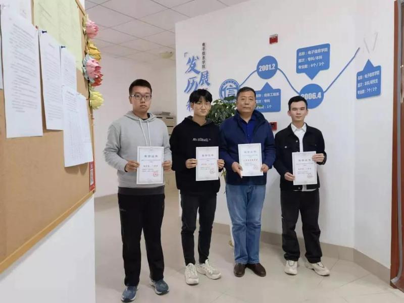 市赛上海电机学院分赛场的比赛由电子信息学院组织,电子信息学院、电气学院和高职学院的13支队伍参赛。赛前我校通过讲座集中指导和专家一对一辅导,进一步提升参赛学生各种能力。比赛期间,工作组按照上海赛区组委会要求,多次召开会议,完善竞赛中的各项措施,推进比赛的进度。在多举措的保障下,我校学子发挥出了应有的技能水平,为学校争得了荣誉。最终,来自电子信息学院的王晨曦、蒙焕方和田晨昊三位同学荣获国家二等奖,孟银阔和刘中华两位老师荣获优秀指导教师奖。