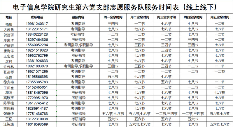 正在努力备战考研复试的同学们也别慌,“硕本联动计划”为你们奉上,学院研究生第六党支部志愿服务队迅速集结了20名志愿者,考研指导、复试调剂辅导以及就业指导,只要你需要,我们随时在线!