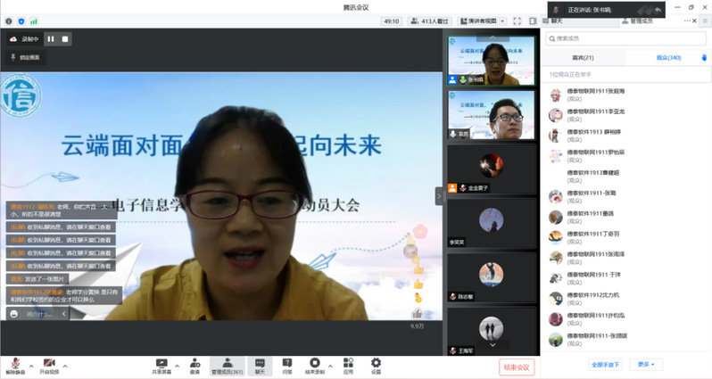七月盛夏日,万木葱茏时。在刚刚送走了2022届毕业生之后,电子信息学院马不停蹄组织了2023届毕业生毕业就业动员大会。7月6日13时,电子信息学院党政领导,各系部主任、专业负责人、企业领导/HR、全体2023届毕业班辅导员、班主任及全体2023届毕业生齐聚云端,携手开启新一轮毕业生就业工作,本次就业动员大会由党总支副书记、副院长袁亮老师主持。