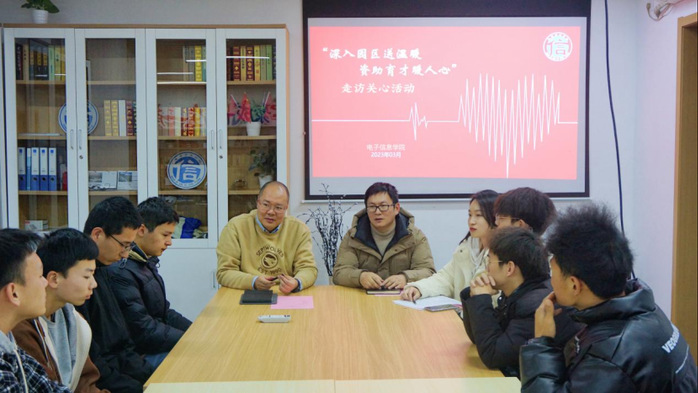 为了学习贯彻党的二十大精神,坚持不懈传递党的关怀、服务青少年成长发展,进一步提升资助育人质量,电子信息学院于3月21日,开展“深入园区送温暖 资助育才暖人心”走访关心活动。电子信息学院院长蔡骋、电子信息学院党总支副书记、副院长袁亮,一同深入学生宿舍进行慰问交流,了解学生情况,关心学生在校期间的成长、学习和生活,传递党和国家、学校的关怀。
