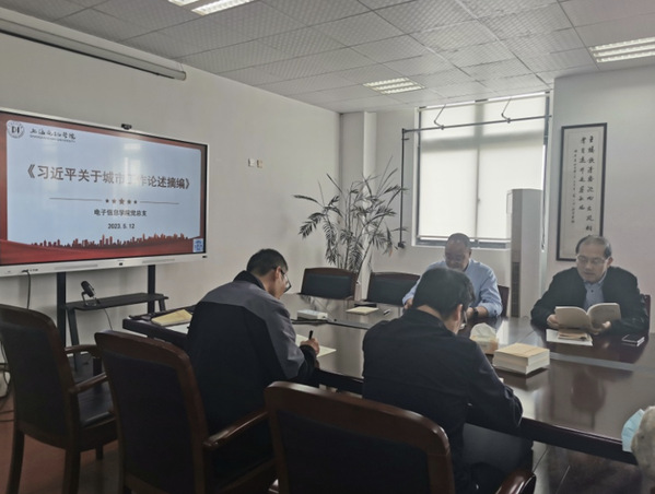 5月12日下午,电子信息学院党总支在信息楼503会议室召开学院中心组理论学习会,集中学习研读《习近平关于城市工作论述摘编》。会议由党总支书记蒋建军主持,党政领导班子、总支委员、支部书记参加读书班学习。