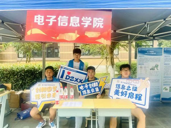 校园里到处洋溢着迎新的氛围,校门口、电子大屏、路边道旗上随处可见迎新标语,学院新生接待点也都亮出欢迎标语牌,为新生们送上专属祝福。