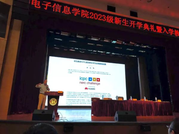 开学典礼结束后,院长蔡骋为新生做入学教育第一课讲座。院长以往届学生的Java编程作业为切入点,从用魔法打败魔法、围绕目标配置资源以及同场竞技三部分深入浅出,结合最新时讯华为Mate 60 pro的研发和考研“四大天王408”的讯息,从专业视角为同学们指明了大学生活的发展方向、奋斗目标。