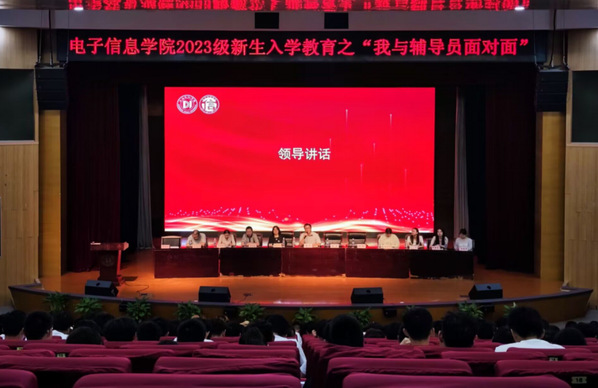 9月26日晚,电子信息学院2023级新生入学教育之“我与辅导员面对面”在临港校区小剧场举行。学院党总支副书记、副院长袁亮,2023级班主任与全体辅导员、新生参加本次会议,会议由学院学工办主任张书娟主持。