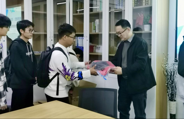 最后,袁亮副书记为同学们发放了御寒衣物,在寒冬来临之际送来学院的一份关爱与温暖。
