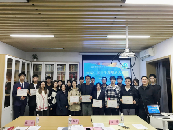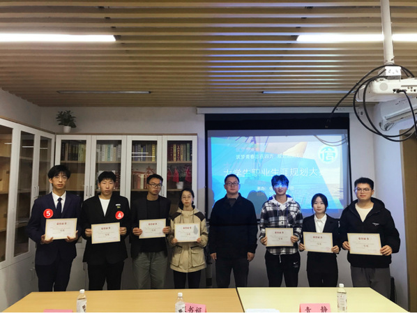 经过激烈角逐,徐婧和黄剑渊同学分别荣获就业赛道一等奖和二等奖,于洋同学荣获成长赛道一等奖,张宏霖和尹宏恩同学荣获成长赛道二等奖、张静姝和高宇航同学荣获成长赛道三等奖。学院党总支副书记副院长袁亮老师为获奖选手颁奖并合影留念,青静老师为入围校级复赛的选手一对一进行指导。