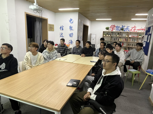 会上,于飞桥同学结合自身学习技巧、参赛经验,将演讲环节分为比赛赛道、比赛逻辑、关键技巧、比赛意义四个部分,由浅入深、娓娓道来。