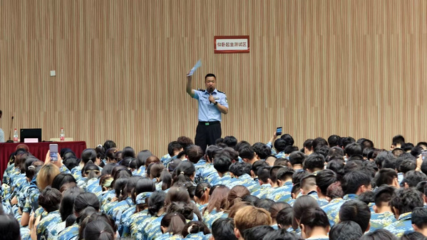 当晚,学校联合浦东公安分局临港高校派出所组织开展新生入学“安全第一课”专题讲座。派出所张所长围绕真实案例,深入浅出地剖析了“刷单返利”“冒充客服”“游戏账号交易”等常见诈骗手法,提醒同学们增强防范意识、筑牢安全底线。讲座内容贴近实际、实用性强,为营造平安和谐的校园环境提供了坚实保障。