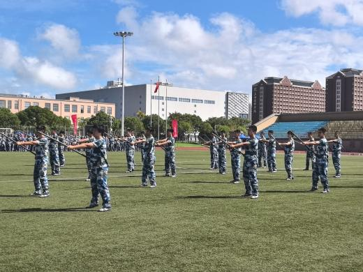 承训部队领导高度肯定了同学们的军训表现,鼓励大家将军训所获的意志品质融入日常学习生活,夯实成长根基,勇担时代使命。校党委副书记朱洪春向承训部队赠送锦旗,并在讲话中向圆满完成军训任务的同学们表示祝贺,向全体教官致以敬意。他勉励学子将军训中锤炼的作风、意志与协作精神延续至今后的大学时光,争做有理想、敢担当、能吃苦、肯奋斗的新时代青年。