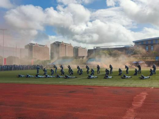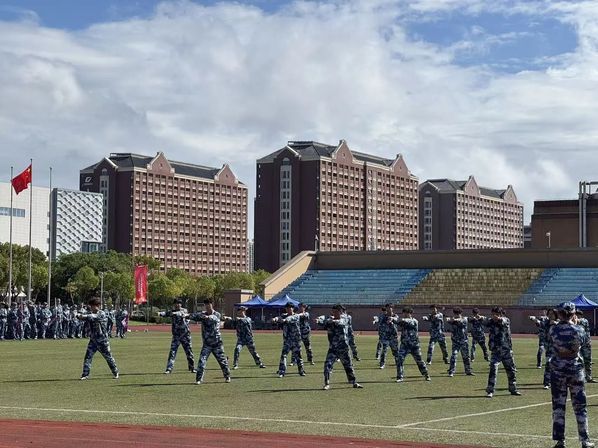 在军训成果展示环节,各连队方阵依次通过主席台。同学们步伐整齐、身姿挺拔,铿锵的脚步声汇聚成青春的节奏。随后,匕首操、军体拳、应急棍术和战术演练等特色项目轮番上演,学子们目光坚毅、气势如虹,生动展现出新时代大学生昂扬向上的精神风貌,赢得现场阵阵掌声。