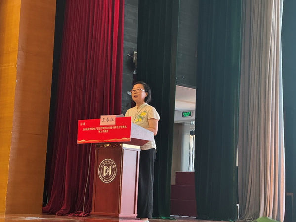 电子信息学院开学典礼由学院学生工作副书记贾欣歌主持。典礼伊始,学院党委书记王春红致辞,代表学院向全体新生表示热烈欢迎。她勉励同学们立足电子信息产业发展前沿,坚持以德为先、能力为重,在大学期间扎实锤炼专业本领,培育创新思维,拓宽国际视野,将个人成长自觉融入强国建设的时代使命。