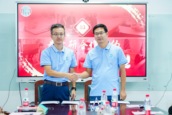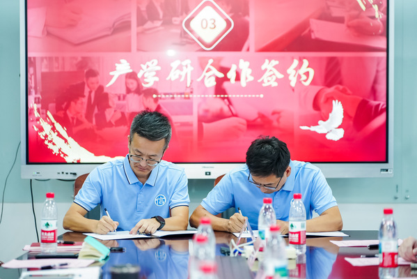 在大家的共同见证下,活动进入了激动人心的仪式环节。首先举行的是产学研合作签约仪式,上海艾为电子技术股份有限公司总经理贾六伟与电子信息学院副院长黎明共同签署了产学研合作协议。艾为电子研发中心将于明年在临港新片区启用,届时校企双方将在技术研发、成果转化、人才培养等领域开展深度合作,致力于打通创新链与产业链,为区域经济发展注入新动能。