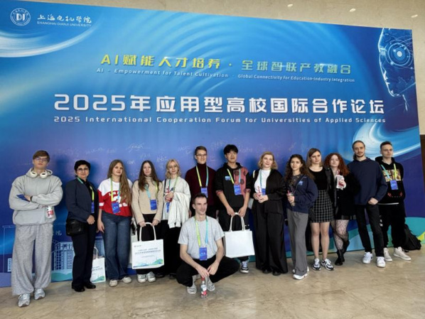 交流期间,学术活动丰富深入。俄方师生参与2025年应用型高校国际合作论坛,并实地参观了临港新片区前沿产业展示馆、上海新松机器人有限公司等前沿科技企业。在校内,学生在实验室完成了通信技术实践,并参加了全英文《Python编程技术》核心课程。中俄青年学术论坛上,双方围绕人工智能、通信技术等主题做了专题报告与热烈研讨。