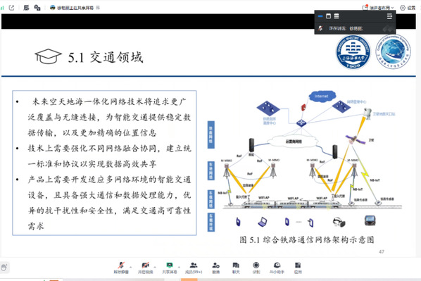 作为讲座的核心内容,徐教授通过架构示意图详细阐释了空天地海一体化网络的体系构成与协同机制。她指出,该网络并非单一技术的升级,而是融合空基、天基、地基、海基四大维度的立体通信生态,旨在弥补地面网络在海洋、荒漠、极地等区域的覆盖盲区。“若将5G视作‘地面高速路网’,空天地海一体化网络则构建起‘覆盖全球的立体交通体系’。”徐教授结合交通、应急、能源等领域的实际案例,进一步揭示了该技术在多个垂直领域的广阔应用前景,使同学们深刻体会到其重要价值。