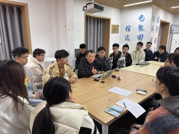 互动交流环节,两名同学结合自身困惑发问:一名同学提出 “学习内容繁杂、精力易分散” 的困扰,另一名同学就考研方向选择与理想信念践行的关系寻求指导。石建水老师耐心倾听并结合《共产党宣言》理论与实践相统一的思想与无产阶级历史使命细致回应,鼓励同学们将理论学习与个人发展相结合,在明确目标中凝聚精力、在追求理想中坚守初心,既立足当下深耕专业,又着眼长远勇担青年责任。互动过程轻松务实,既拉近师生距离,更让同学们在理论联系实际中获得思想启发与行动指引。