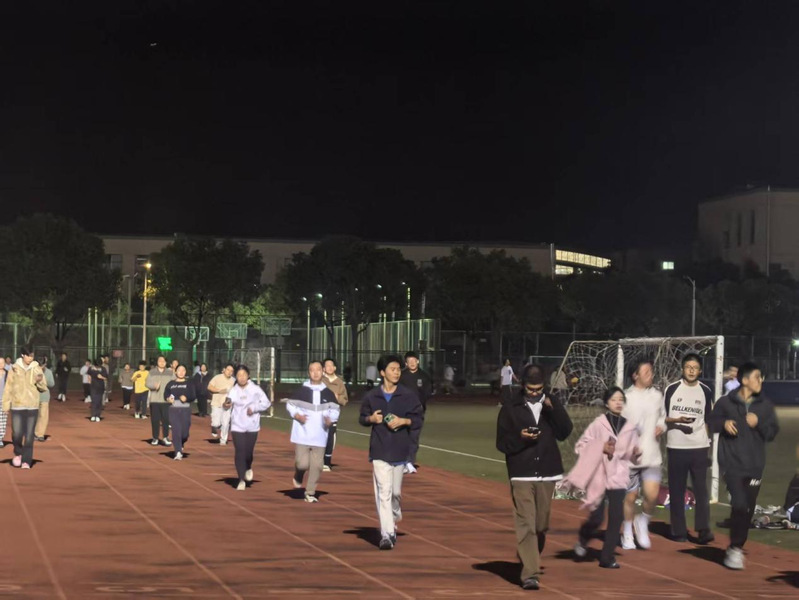 活动期间,夜幕降临后,同学们身着轻便运动装,陆续来到操场,以饱满的精神状态投入奔跑。佩戴的运动手环在夜色中形成流动的光带,展现出青春的朝气与活力。跑道上,同学们或结伴同行,在运动中交流思想、舒缓压力;或独自坚持,以稳健的步伐磨炼意志。大家在奔跑中增进友谊、凝聚集体力量,充分展现了新时代大学生昂扬向上的精神风貌。
