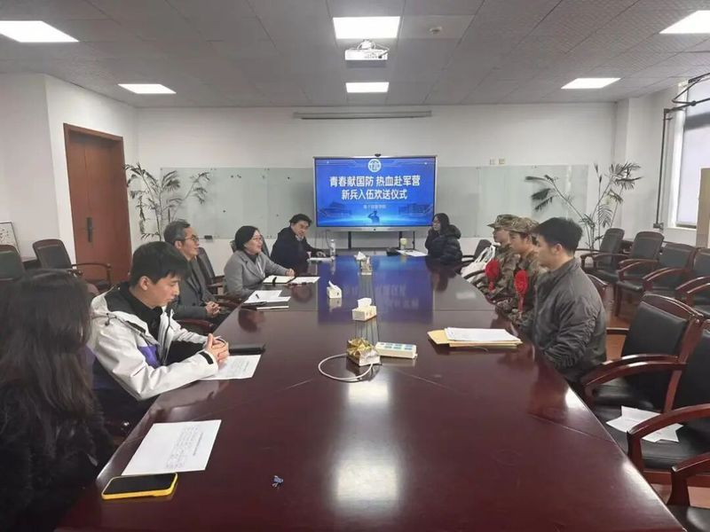 风华正茂抒壮志,参军报国踏征程。2026年3月9日下午,电子信息学院在信息楼503举行2026年春季新兵入伍欢送仪式。学院党委书记王春红、党委副书记兼副院长贾欣歌、征兵辅导员李笑笑、班主任代表以及即将奔赴役前训练的3名入伍新兵齐聚一堂,共同见证这一光荣时刻。仪式由学院党委副书记、副院长贾欣歌主持。